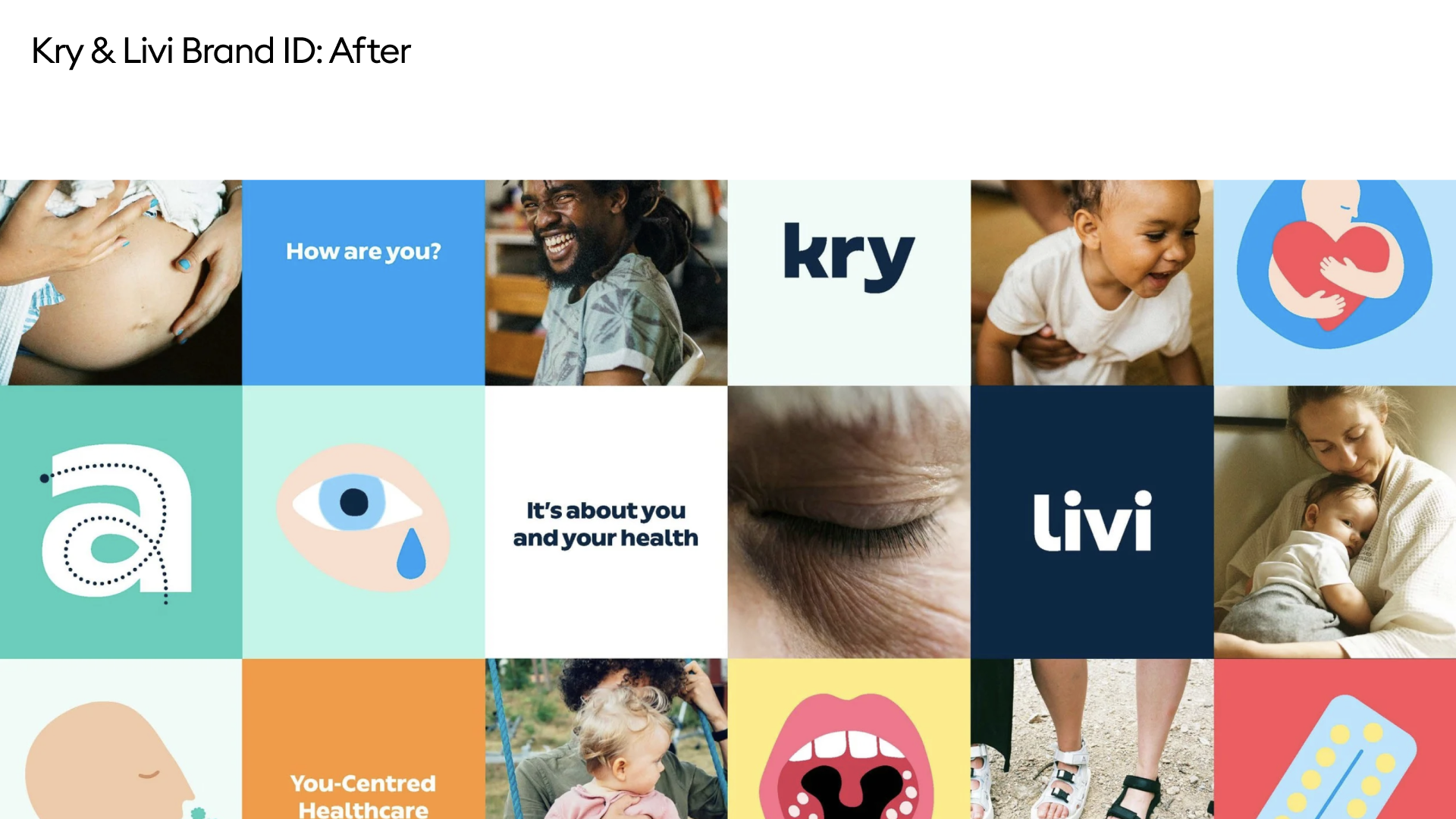 We translated this into a visual language built on soft organic forms, calming and psychologically informed colours, and art-directed illustration and photography that felt diverse, approachable, and human. The result positioned Kry/Livi as a modern, patient-first brand in an industry often seen as cold or “too clinical”.